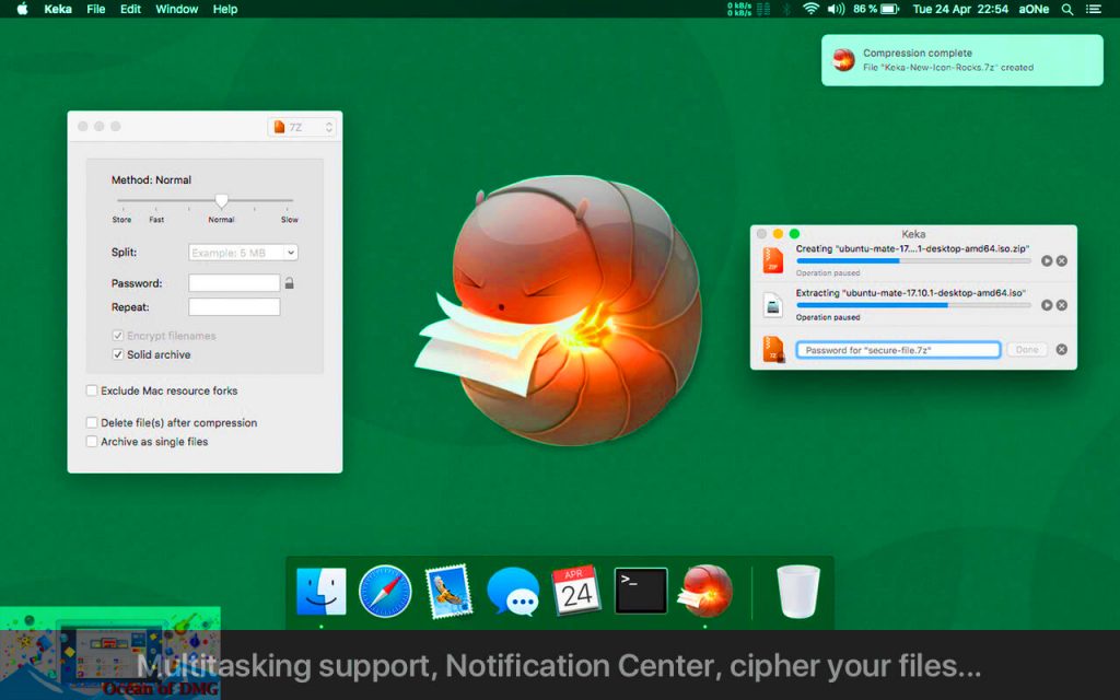 你甚至无需打开 Keka 来压缩文件,只需将其保存到 Dock 中,